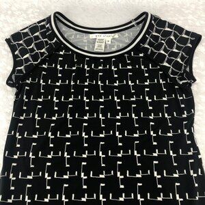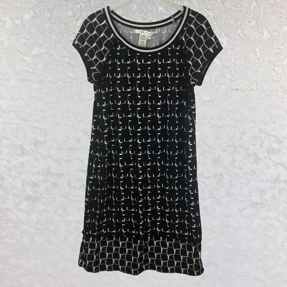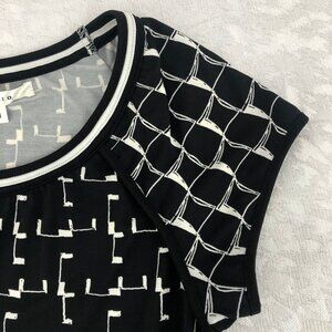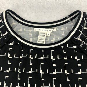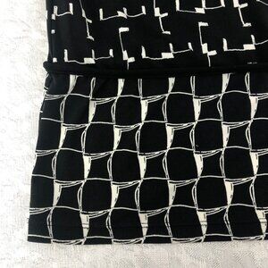 Max Studio Black & White Geometric Print Short Sleeve Midi Dress