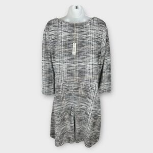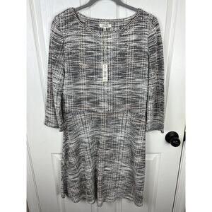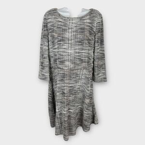 Max Studio Black White New Knit Tweed Fit and Flare Dress 3/4 sleeve Size Large