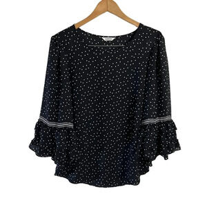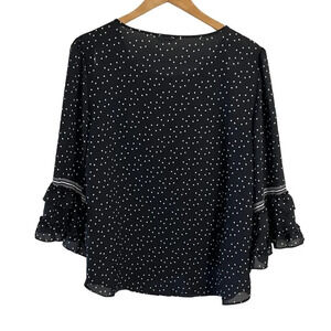 Max Studio Black and White Polka Dot Blouse 3/4 Ruffled Sleeves Sheer Lightweight