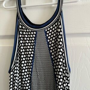 Max Studio Black and White Polka Dot Top with Blue Accents