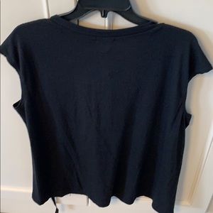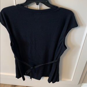 Black blouse with cap sleeves. Ties in the back and you can