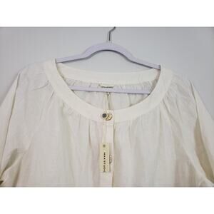Max Studio Blouse Top Women's Size L Button Front Linen Blend Tie Sleeve