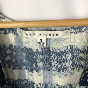 Max Studio Blue & Beige Printed Drape Front Short Sleeve Knee Length Dress S