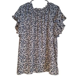 Max Studio Blue Floral Ruffle Sleeve Blouse Women’s Size 1X
