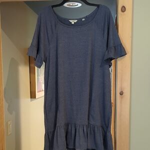 This casual mini dress by Max Studio features a charming ruffled design in a drnim blue. With its short raglan sleeves and crew neck, it offers a relaxed fit perfect for everyday wear. The dress combines comfort with a touch of femininity, making it an ideal choice for casual outings.