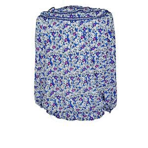 Max Studio Blue Purple Daisy Print Short Sleeve Bubble Hem 3/4 Sleeve Blouse