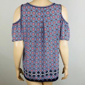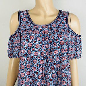 Max Studio Blue Red Bohemian Print Short Cold Should Sleeve Women's S Top