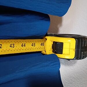 @sugjmartin added photos! Between 24 and 25 in pit to pit. 100% polyester, little bit of stretch to it 🙂