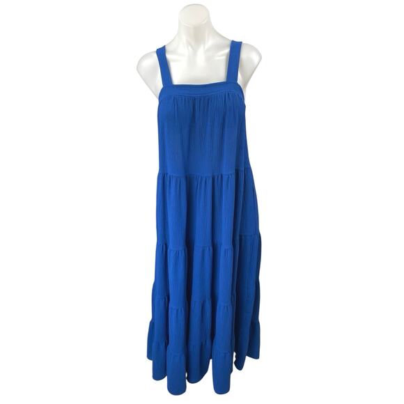 Max Studio Blue Sleeveless Square Neck Cami Tiered Midi Maxi A-Line Dress Size S