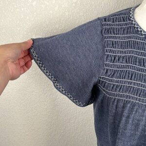 Max Studio Blue Smocked Short Sleeve Midi Dress Size XS