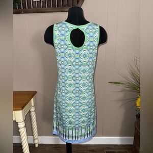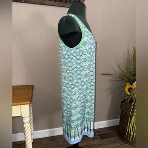 Max Studio • Blue and Green Geo Print Sun Dress