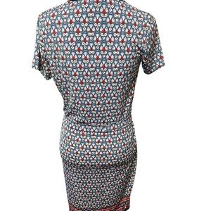 Max Studio Blue and Red Tie Front Midi Dress Polo Collar, NWT, Size Small