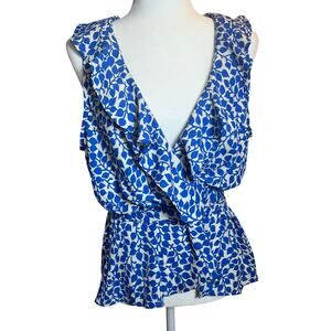 Max Studio Blue and White Ruffle Sleeveless Top Size Large (L462)
