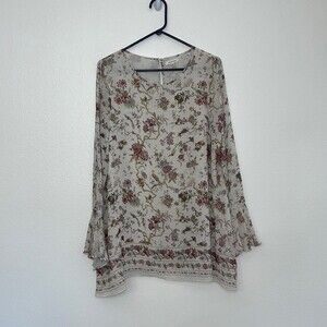 Max Studio Bohemian Bell Sleeve Floral Bird Tunic Top Large