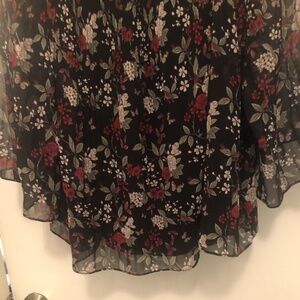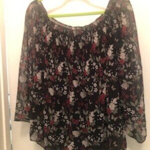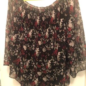 Let your self-expression blend with this boho chic top from Max Studio. Celebrate your individuality through this flowing top and eye-catching artisan floral print. The moody black background enhances the deep wine and green florals. Features include an elastic neckline, wear on or off shoulders, flowy 3/4 sleeves and print overlay with solid black lining.