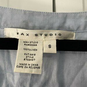 Max Studio Boho Top Short Sleeve Chambray Trim Ruffle Linen Small