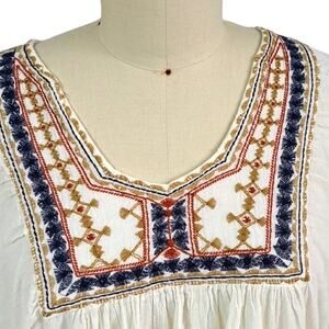 Boho flowy top with beautiful details around neck line and sleeves. size Large