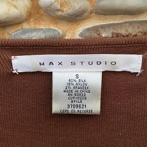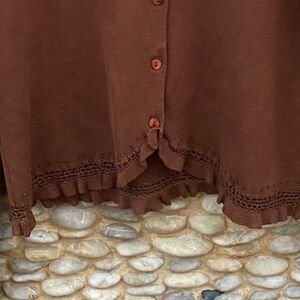 Max Studio Brown Cardigan w/Beaded/Eyelet/Ruffle Hem Detail. Size Small.