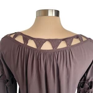 Max Studio Brown Crochet Lace Trim Peasant Top Size SMALL Blouson Bohemian Fall