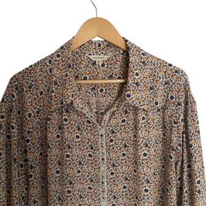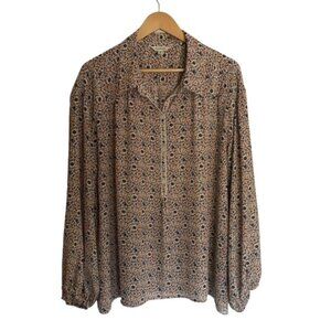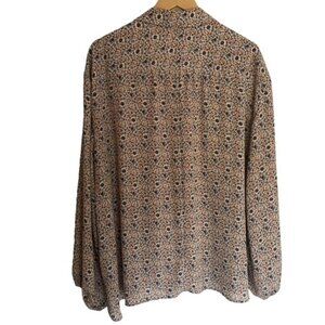Stylish brown blouse with intricate pattern. Long sleeves and button-up front. Perfect for casual or office wear.