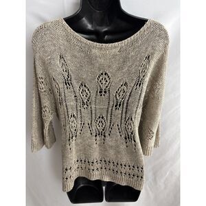 Max Studio Brown Summer Sweater Linen Blend Lagenlook Size XS Classic Knit Basic