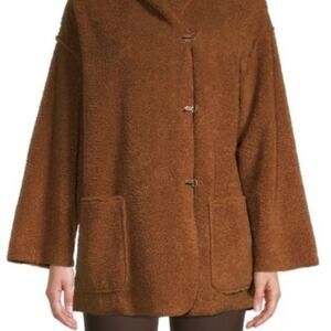 Max Studio Brown Teddy Bear Oversized Sherpa Jacket With Hood women’s size small
