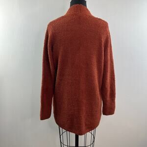 Max Studio Brown Teddy Cardigan Sweater Shawl Collar Open Front Size Medium NEW