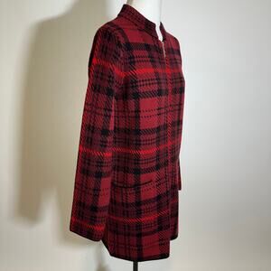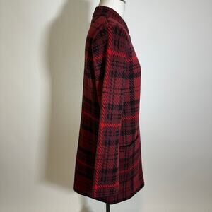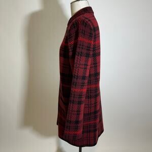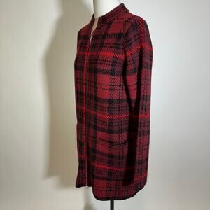 Max Studio Buffalo Plaid Houndstooth Long Zip Shacket Knit Sweater Womens Medium