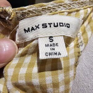 Max Studio Butter Yellow Gingham Baby doll Top S Embroidered Vintage Boho Tunic