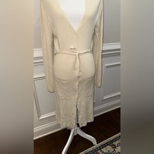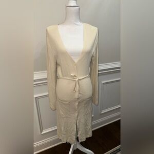 Max Studio Button Down Stretchy Ivory Long Cardigan sz L