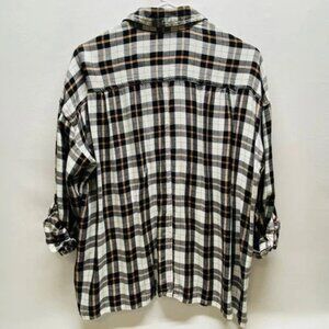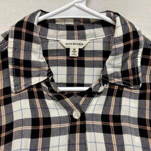 Max Studio Button-Up Shirt Women's Medium Black White Plaid Roll Tab Sleeves GUC
