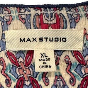 Max Studio Cap Sleeve Crew Neck Short Semi Sheer Printed Dress Size XL