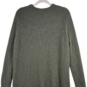 Max Studio Cardigan Sweater XL Green Ribbed Mohair Blend Open Front Safety Pin
