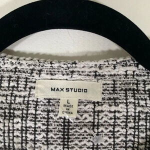Max Studio Cardigan Women’s Large White Black Tweed Sweater Cardigan