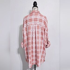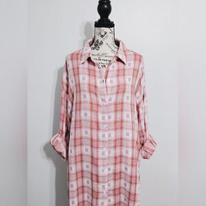 Max Studio Checkered Button-Up Oversized Tunic Shirt Size Large NWOT