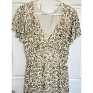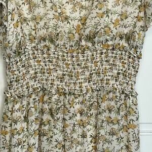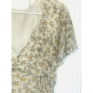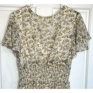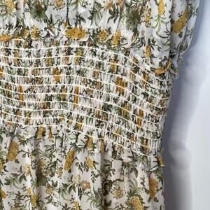 Max Studio Chiffon Ruffle Smocking Maxi Dress Women's Sz M Cottage Prairie Fairy