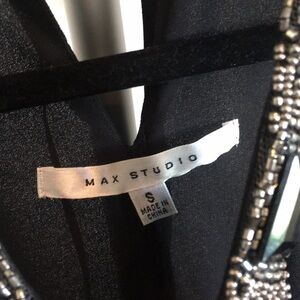 Max studio beaded collar chiffon tunic top- loose Flowy fit - ties at neck - size small - gently worn, a couple small pulls - Shoulder to hem about 28”