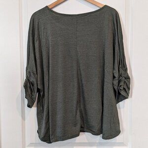 Max Studio Cinched Sleeve Top Size 3X Army Green Jersey Dropped-Shoulder T-Shirt NWT