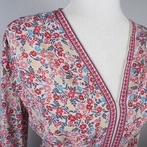 Max Studio Colorful V-Neck Top Ties in the Front Size Medium