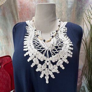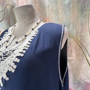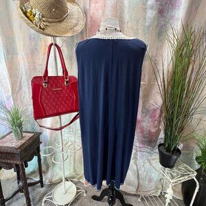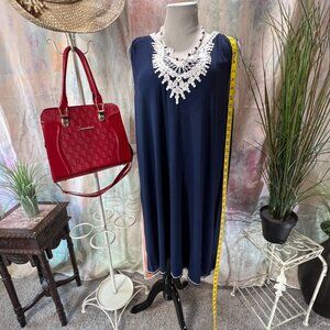 πMax Studio Comfy Navy Blue Viscose Blend Plus Size Dress Embroidered Yolk
