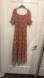 Elegant midi dress with floral pattern. Features smocked bodice and short sleeves, tiered flowing skirt.