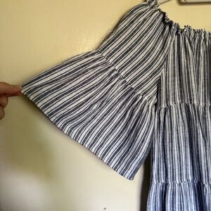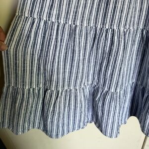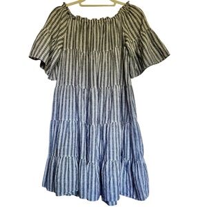Max Studio Cotton Linen Flutter Sleeve Tiered Babydoll Dress Gray Stripe Medium