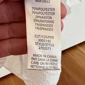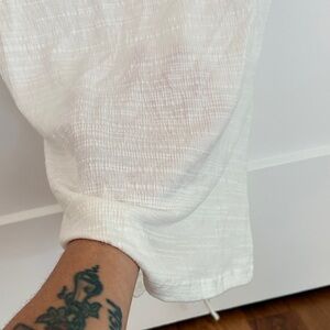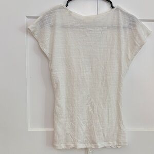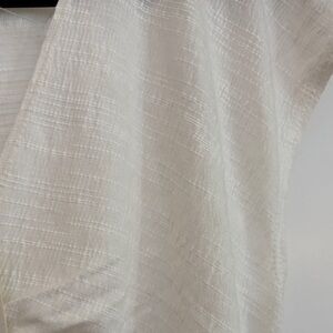 Chic cream blouse with ruched front. Flattering V-neck design. Perfect for versatile styling. Is sheer. Is new with tags. Size medium woman’s.