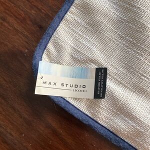 Max Studio Cream and Blue Textured Fabric Pillow Cover