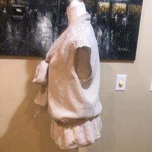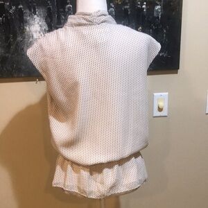 Max Studio Cream with Black Dots Tie Neckline Blouse Elastic Waist-Size L
