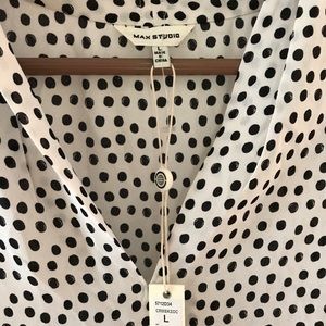 Max Studio Creamy white with black polka dots - size L