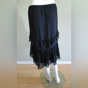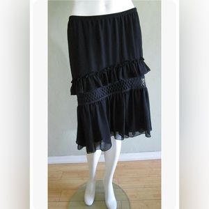 Max Studio Crepe Ruffled Tiered Skirt in Black Size M