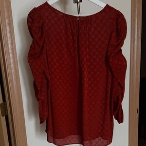 Chic and stylish blouse by Max Studio. Features a rich red hue. Perfect for versatile wear. Size L