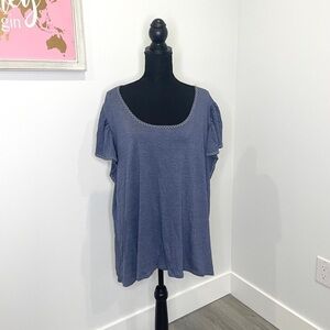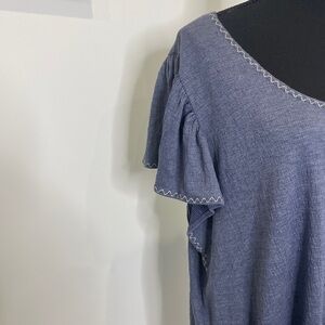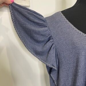 NWT - Max Studio Denim-Like Round Neck Short Ruffle Sleeve Top