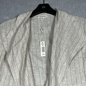 Max Studio Drape Front Womens Size Small Ivory Linen-Blend Jacket Striped